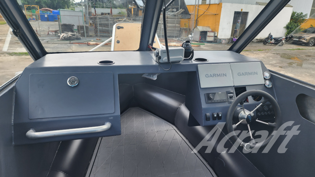 The extra structural bracing and integrated grid configuration enable us to make boats that can handle the highest horse power rating in their class. In the case of the 725 SFHT this means we can fit a 300HP engine or even twin 150HP engines. In addition to the increased performance larger engines have the additional benefits of being able to cruise a comfortable speeds are much lower revolutions per minute. This makes for a much quieter boat, this combined with the armor coated hulls and the foam filled, pontoon tubes and hull make these the quietest Aluminium boats available.